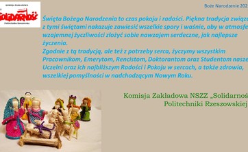 Życzenia z okazji Świąt Bożego Narodzenia oraz Nowego Roku od Komisji Zakładowej NSZZ Solidarność Politechniki Rzeszowskiej