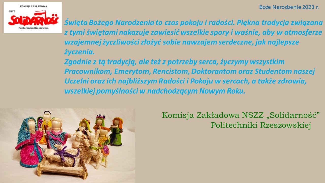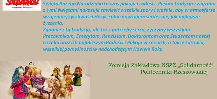 Życzenia z okazji Świąt Bożego Narodzenia oraz Nowego Roku od Komisji Zakładowej NSZZ Solidarność Politechniki Rzeszowskiej